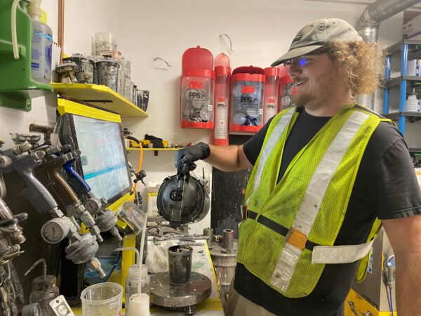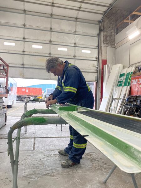 Our 55ft paint booth is large enough to handle oversized vehicles including excavators, car carriers and trailers